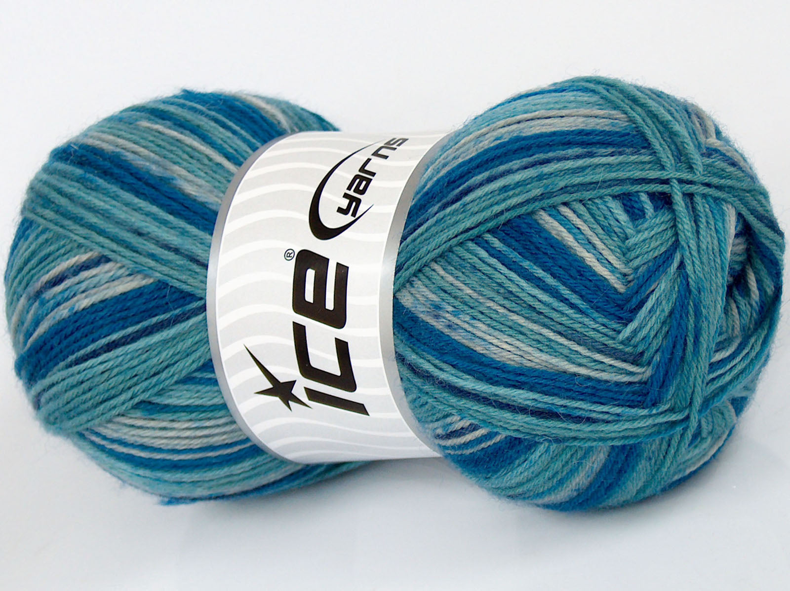 Lot of 4 x 100gr Skeins Ice Yarns MULTICOLOR SOCK (75% Superwash Wool) Yarn Turquoise Shades Purple Cream
