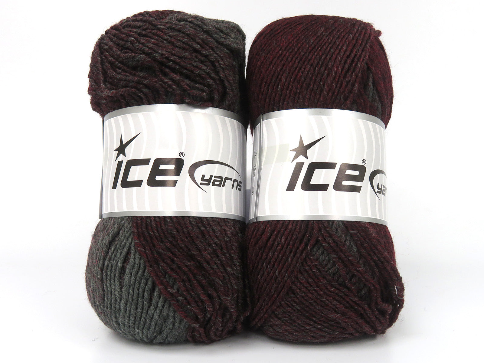 Lot of 2 x 150gr Skeins Ice Yarns CANTERBURY (25% Wool) Yarn Burgundy Grey